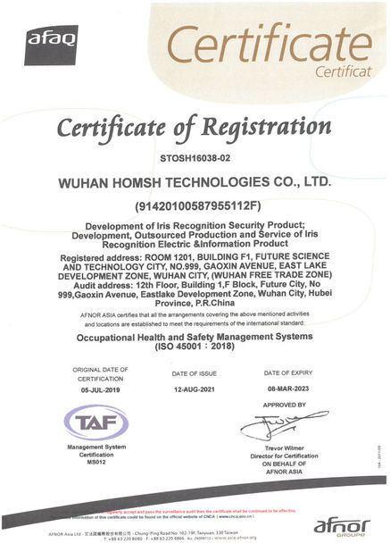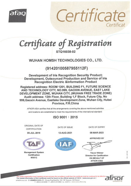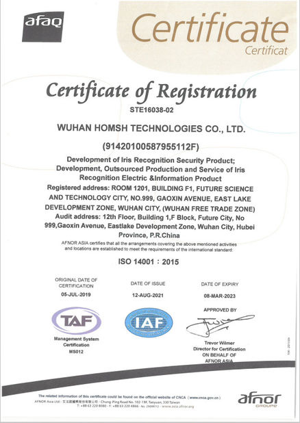 In den letzten zehn Jahren war Homsh Technologies ein Pionier auf dem Gebiet der Iriserkennung.Einbeziehung von technologischen Innovationen und Entwicklung branchenführender Kernalgorithmen und integrierter SchaltkreischipsDas Unternehmen wurde mit mehr als 60 Auszeichnungen und Anerkennungen auf verschiedenen Ebenen, von national bis provinziell, ausgezeichnet, was zu seinem robusten und nachhaltigen Wachstum belegt.Homsh hat 18 Unternehmensqualifikationen erworben, einschließlich der Anerkennung als nationales High-Tech-Unternehmen und der Erteilung von Zertifizierungen wie ISO 9001:2015, ISO 14001:2015, und ISO 45001:2007Das Unternehmen hat zudem 16 Firmenpreise erhalten, wie den China Patent Excellence Award und den Gold Patent Award der Provinz Hubei.Der Talentpool hat 13 ausgezeichnete Auszeichnungen, darunter das Hundert Talente-Programm von Hubei., während seine Produkte 11 Auszeichnungen wie das Ministerium für öffentliche Sicherheit für wissenschaftliche und technologische Leistungen erhalten.einschließlich der Strategischen Allianz für biometrische Innovation, und hat zur Entwicklung von acht nationalen Normen für die mobile biometrische Identifizierung und verwandte Bereiche beigetragen.